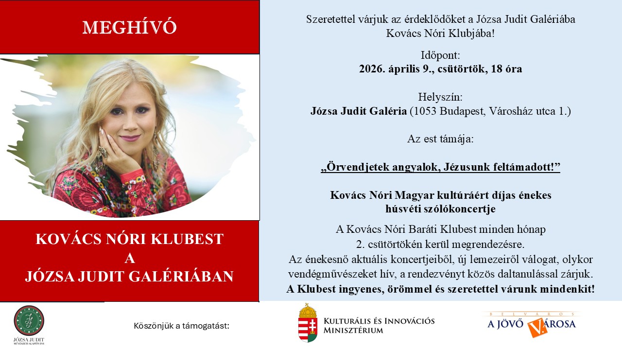 2026. április 9-én, csütörtökön, 18 órakor KOVÁCS NÓRI BARÁTI KLUB