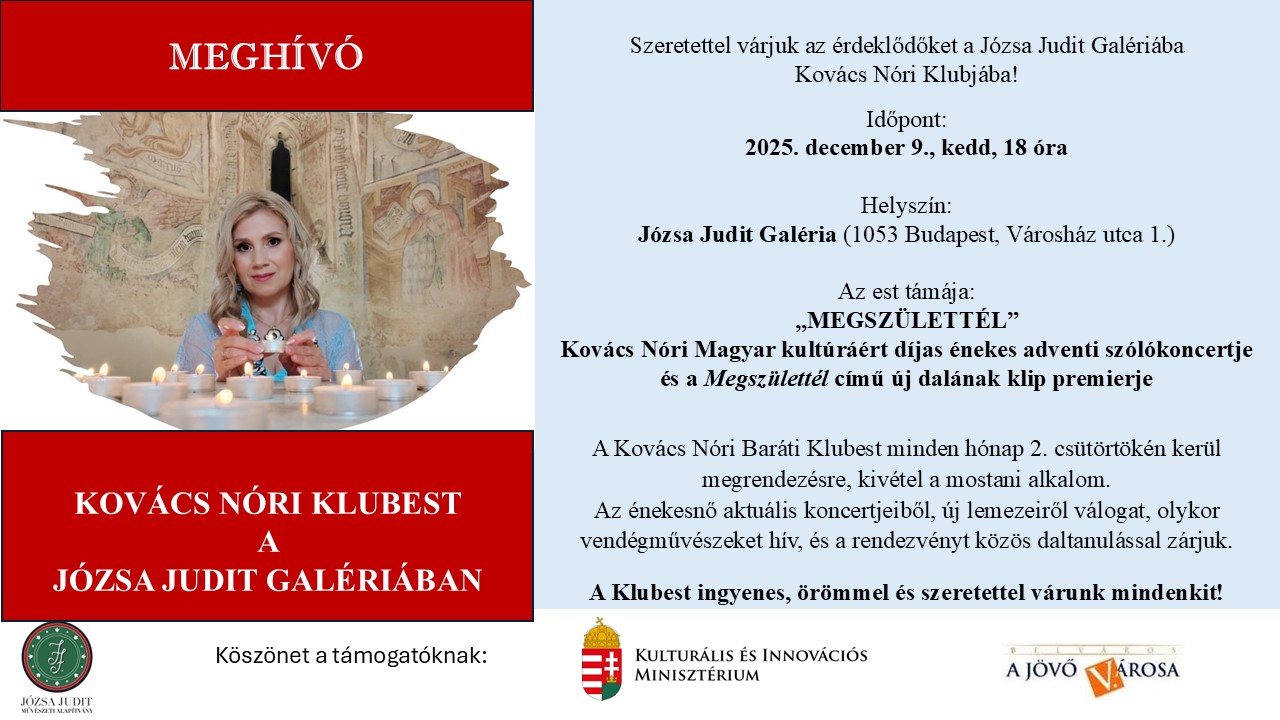 2025. december 9-én, kedden, 18 órakor KOVÁCS NÓRI BARÁTI KLUB